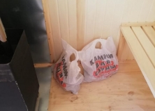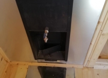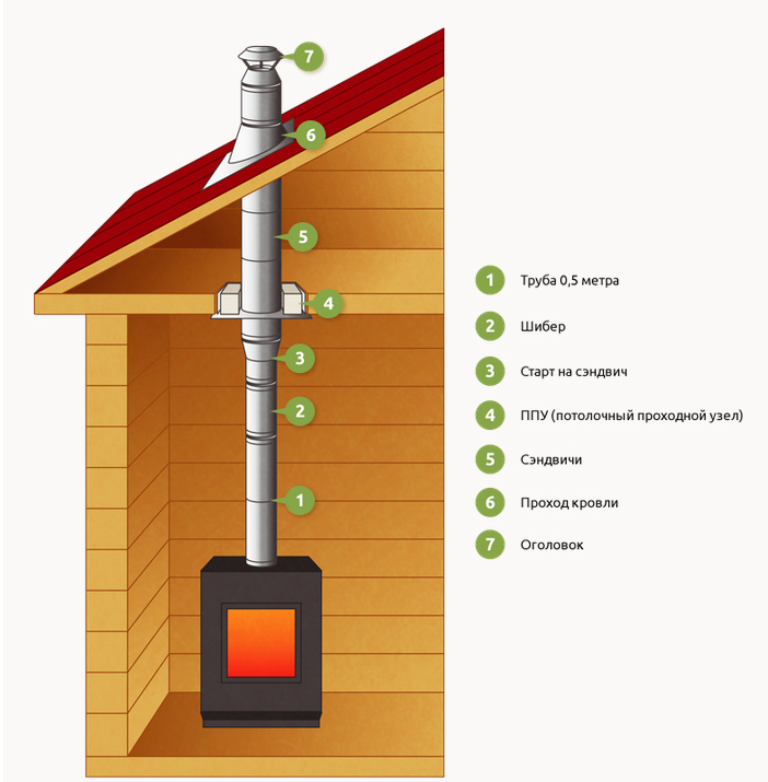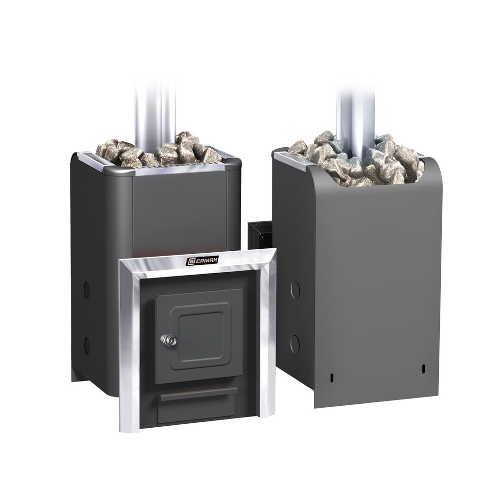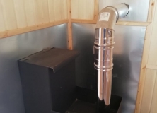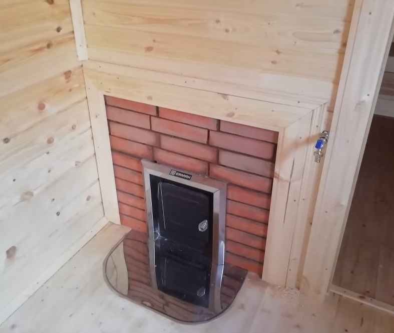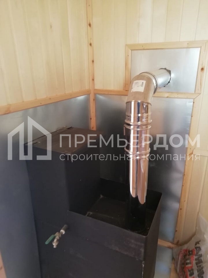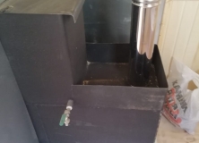 Сварная с баком для воды на 45 литров. Вывод дымохода через стену. |