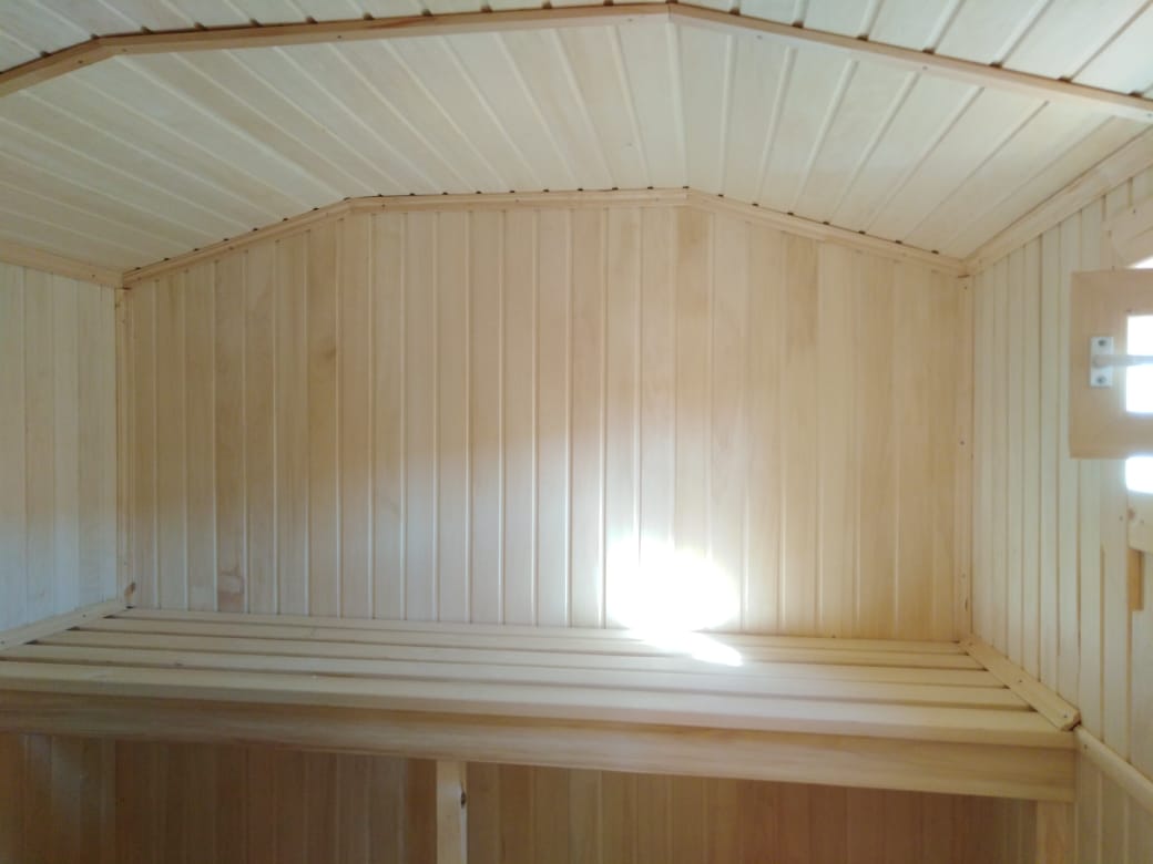 Обшит вагонкой хвойных пород класс «В», камерной сушки. |