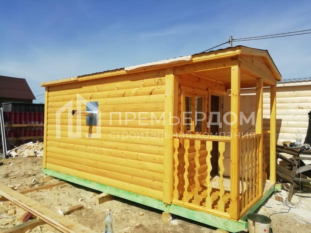 Каркас :доска 40×100 мм.,шаг 800 мм. Наружная отделка имитация бруса. Утепление минеральная вата 100 мм. Внутренняя отделка вагонка класса «В» камерной сушки. Наружная покраска — Биотекс (цвет : на выбор Заказчика) |