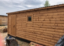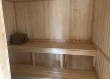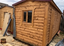 Обшит вагонкой хвойных пород класс «В», камерной сушки.