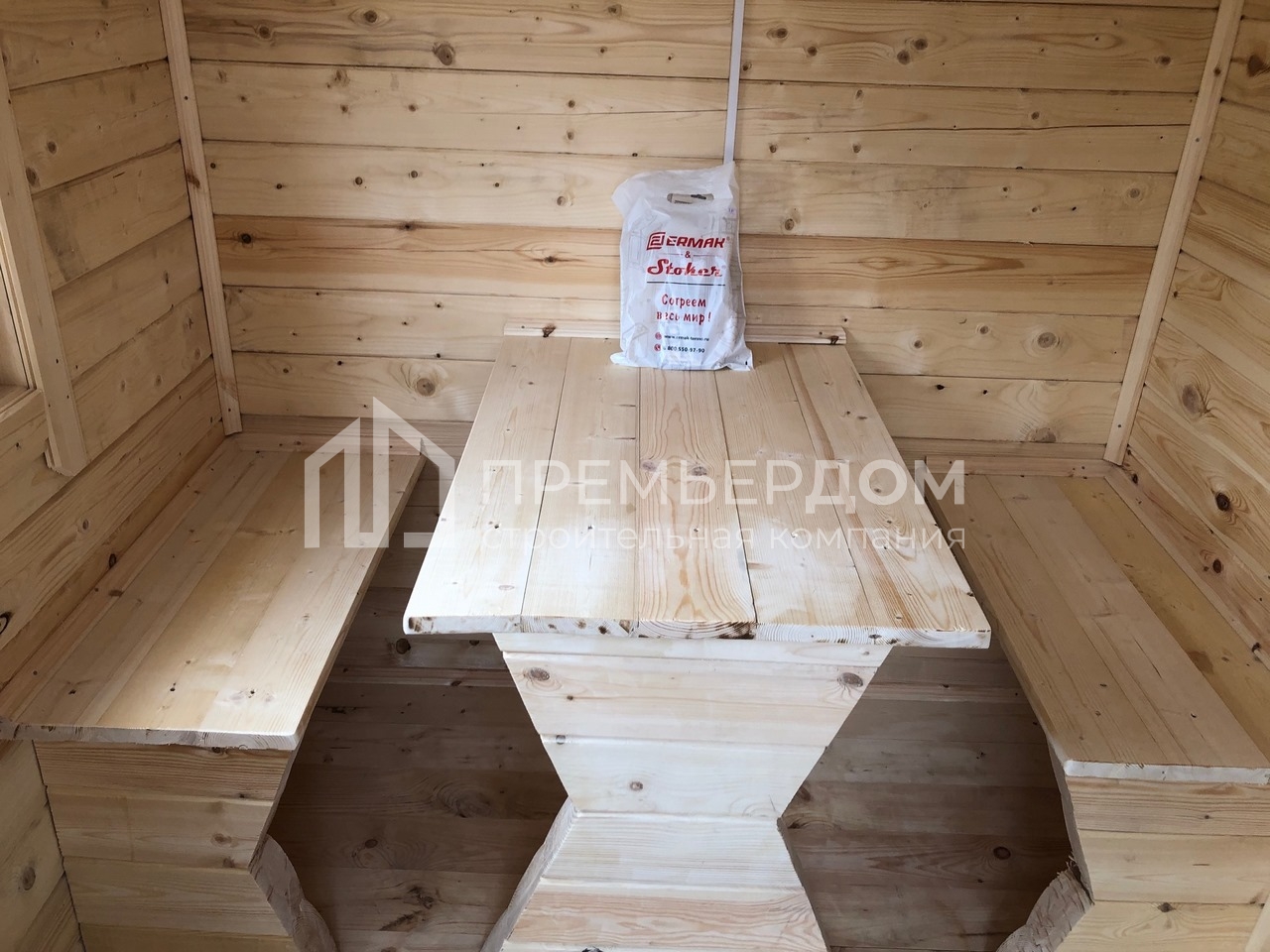 В раздевалке стол и две лавки.(согласно проекта)