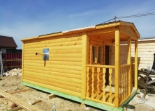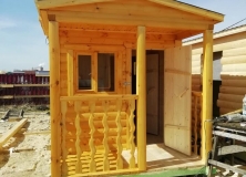 Каркас :доска 40×100 мм.,шаг 800 мм. Наружная отделка имитация бруса. Утепление минеральная вата 100 мм. Внутренняя отделка вагонка класса «В» камерной сушки. Наружная покраска — Биотекс (цвет : на выбор Заказчика) |