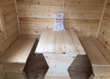 В раздевалке стол и две лавки.(согласно проекта)