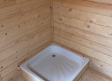 Слив по центру помывочного отделения или поддон (согласно проекта)